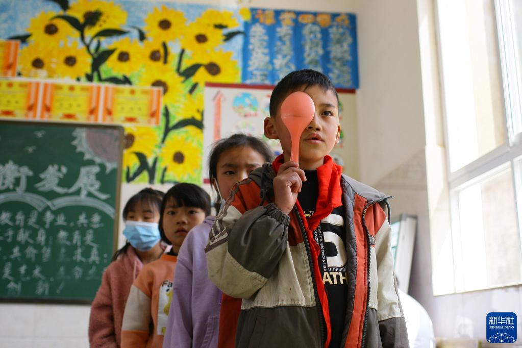 3月14日,在曲靖市沾益區白水鎮崗路小學,學生進行視力測試。