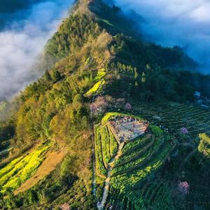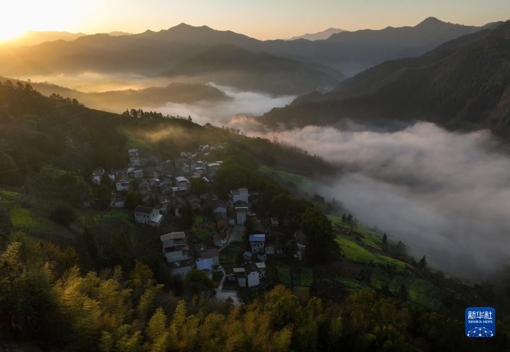 當日,安徽省黃山市歙縣霞坑鎮石潭村現壯觀云海,春景如畫。