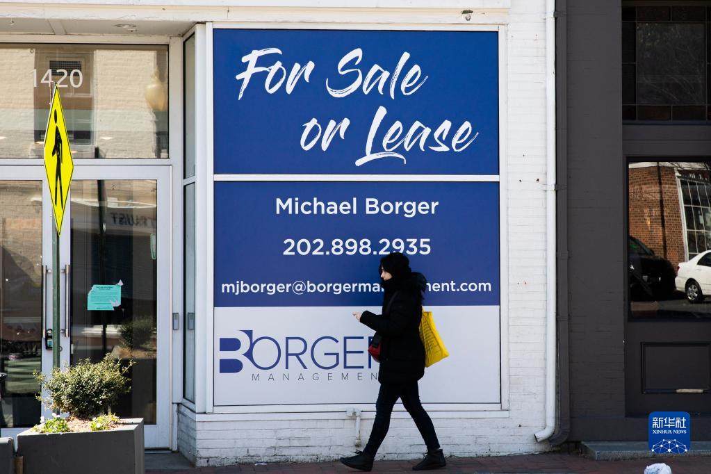 3月14日,在美國華盛頓,一名女子從房屋租售廣告前走過。