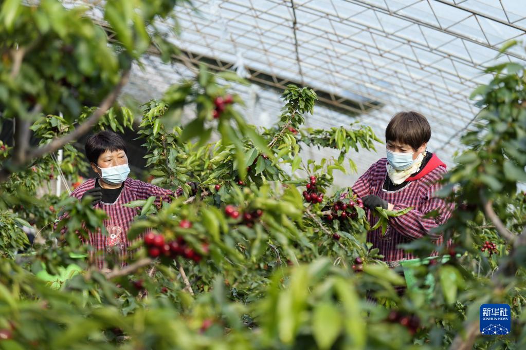 3月15日,河北省樂亭縣一家農業開發企業的工人在大棚內采摘櫻桃。