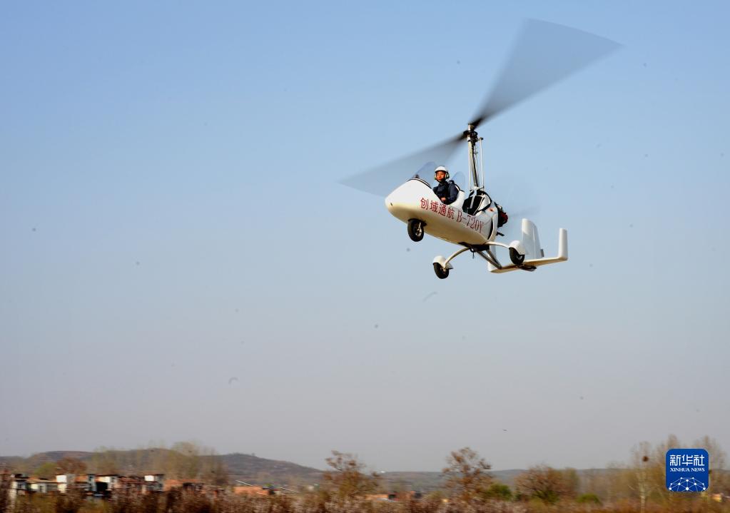 3月14日,楊世誼在洛陽市宜陽縣的飛行營地內駕駛旋翼機進行性能測試。
