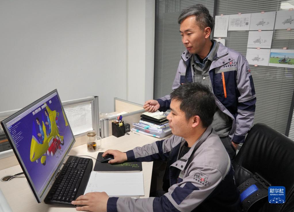3月14日,在位于洛陽市的生產車間內,楊世誼(后)在指導工程師進行整機設計。