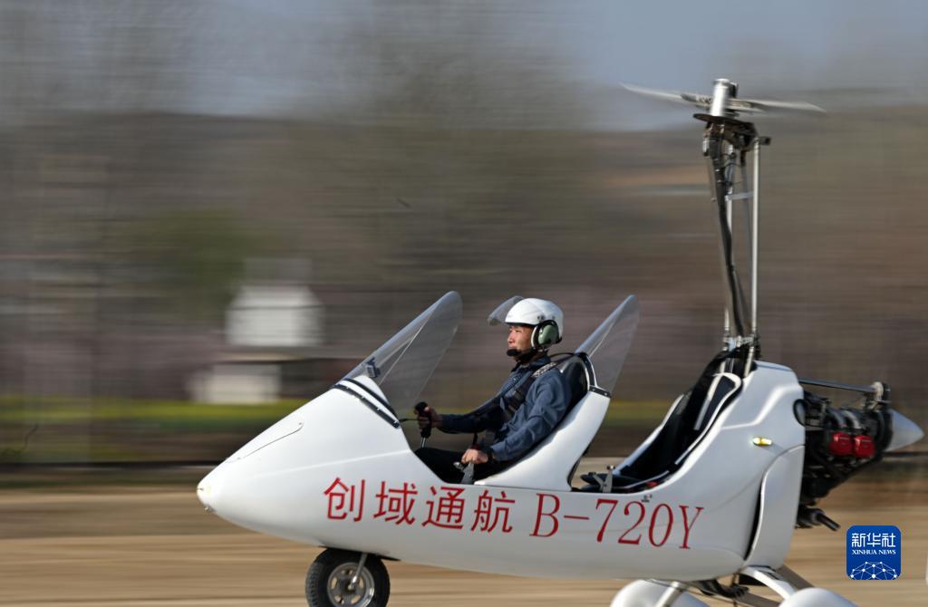 3月14日,楊世誼在洛陽市宜陽縣的飛行營地內駕駛旋翼機進行性能測試。