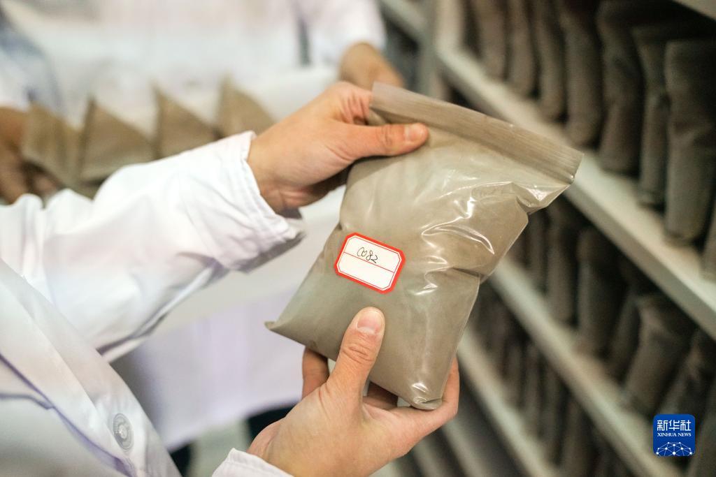 3月14日,在北大荒集團建設農場有限公司農業科技園區土樣室,孫凡紅在整理土壤樣品。
