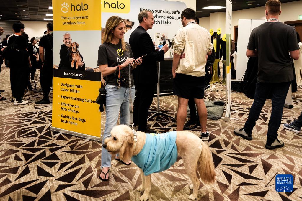 3月11日,在“西南偏南”大會和藝術節上,一位參與者正在體驗一個支持衛星定位的狗項圈。