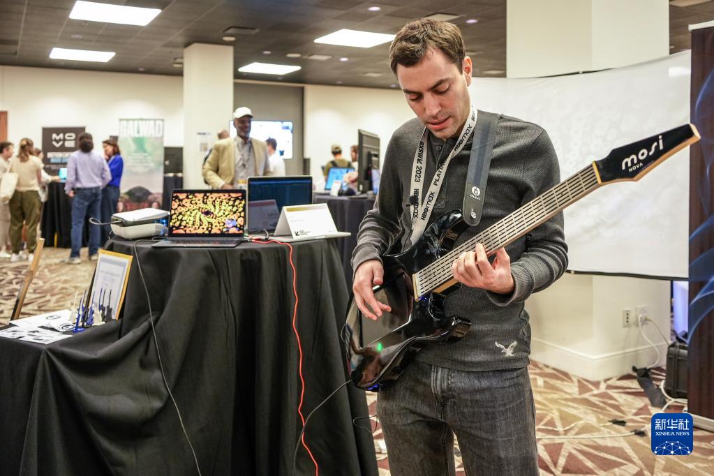 3月11日,在“西南偏南”大會和藝術節上,一位參與者正在體驗音樂合成控制器“Mosi”。