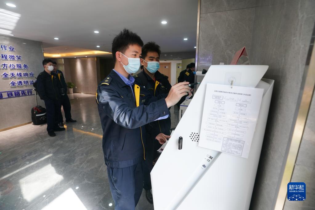 3月15日,在南京行車公寓,列車乘務人員使用自助出退勤一體機錄入信息。