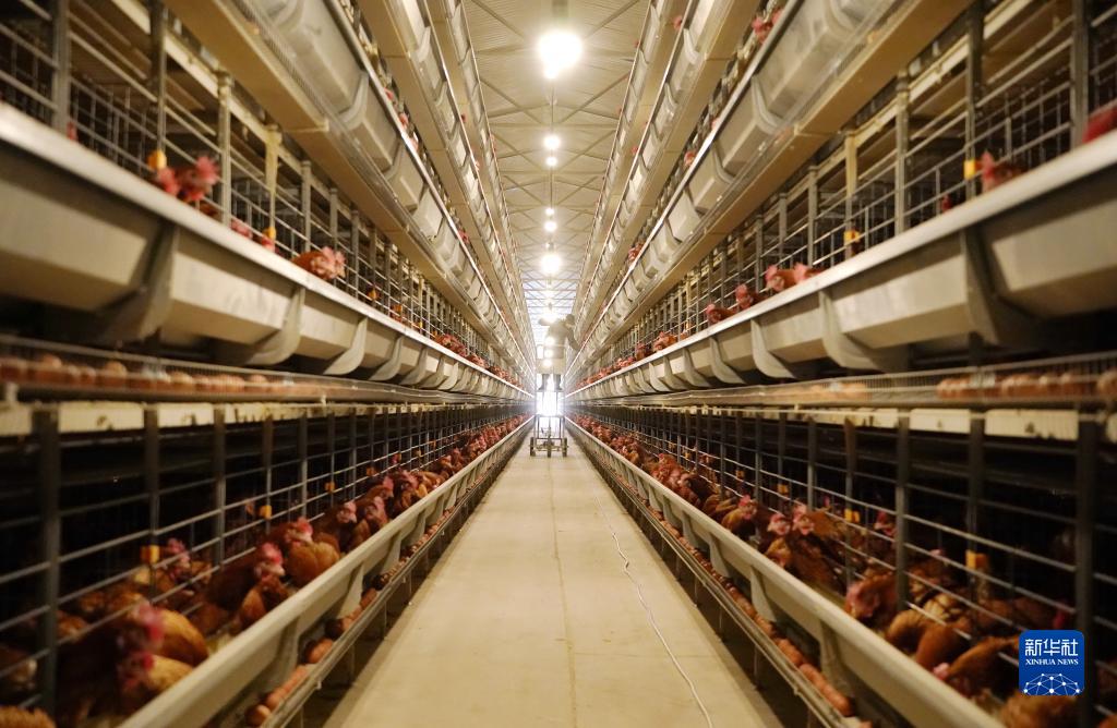 3月15日,秦皇島市撫寧區榆關鎮一家蛋雞養殖合作社的社員在雞舍內工作。