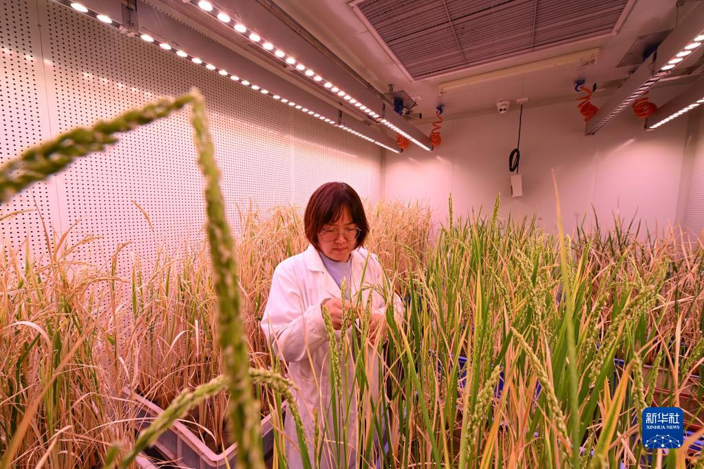 3月14日,在天津市農業科學院農作物研究所,科研人員在人工氣候室內考察小站稻試驗材料性狀。