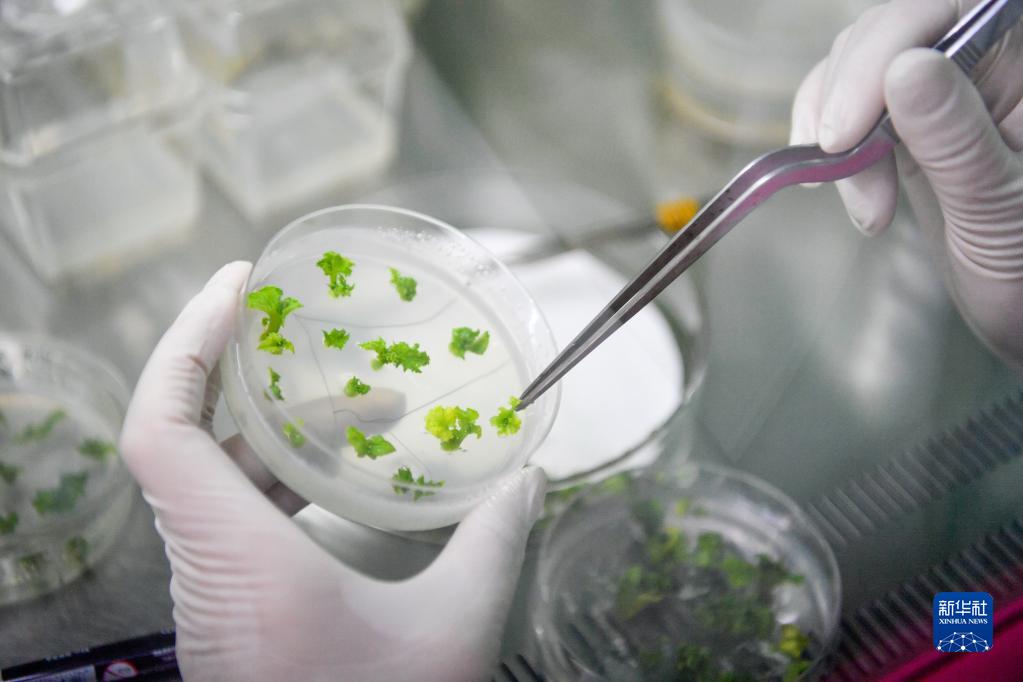 3月14日,在天津市農業科學院種質資源與生物技術研究所,科研人員開展黃瓜遺傳轉化篩選試驗。