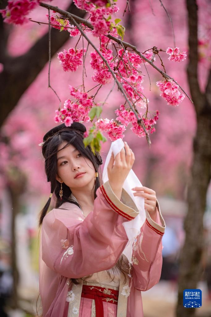 近日,云南昆明圓通山公園的櫻花進入盛花期,吸引大批游客前來觀賞。