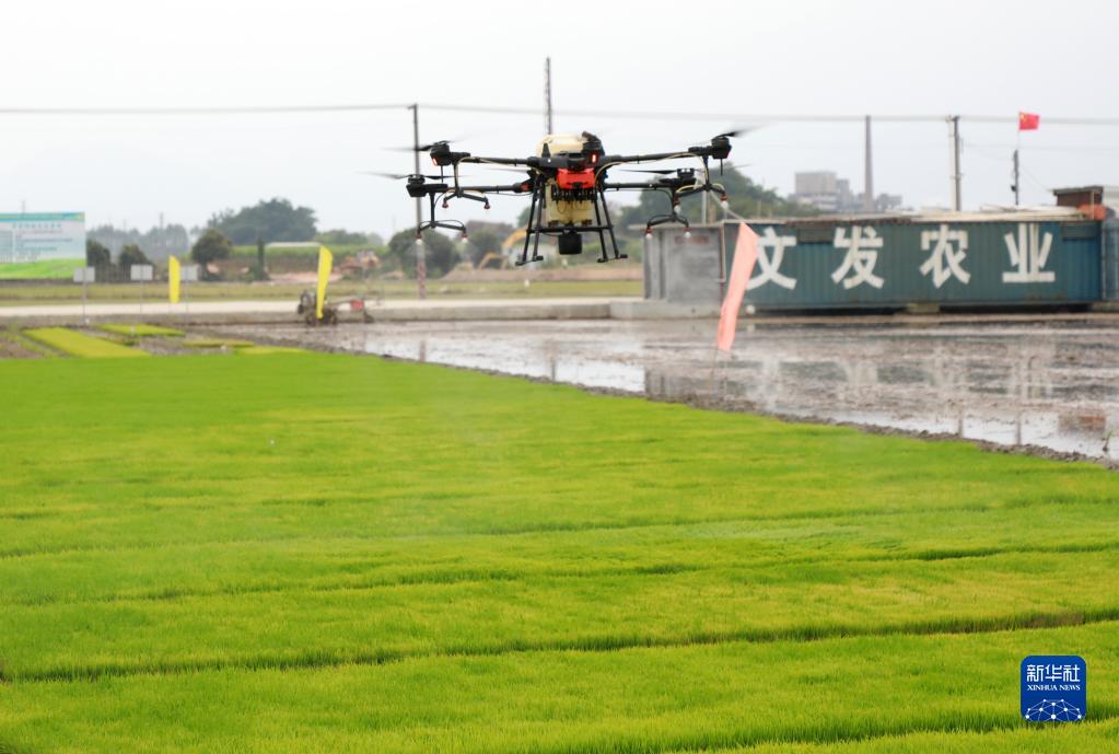 近日的嶺南大地,春耕正當時,廣東省江門市新會區文發農場利用無人機、無人駕駛插秧機等進行噴灑殺菌藥、插秧等作業,助力春耕生產。