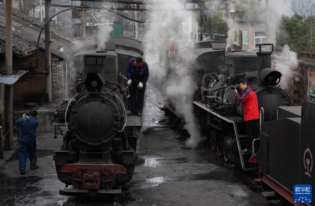 3月15日,“張火癡”在嘉陽小火車檢修車間拍攝。