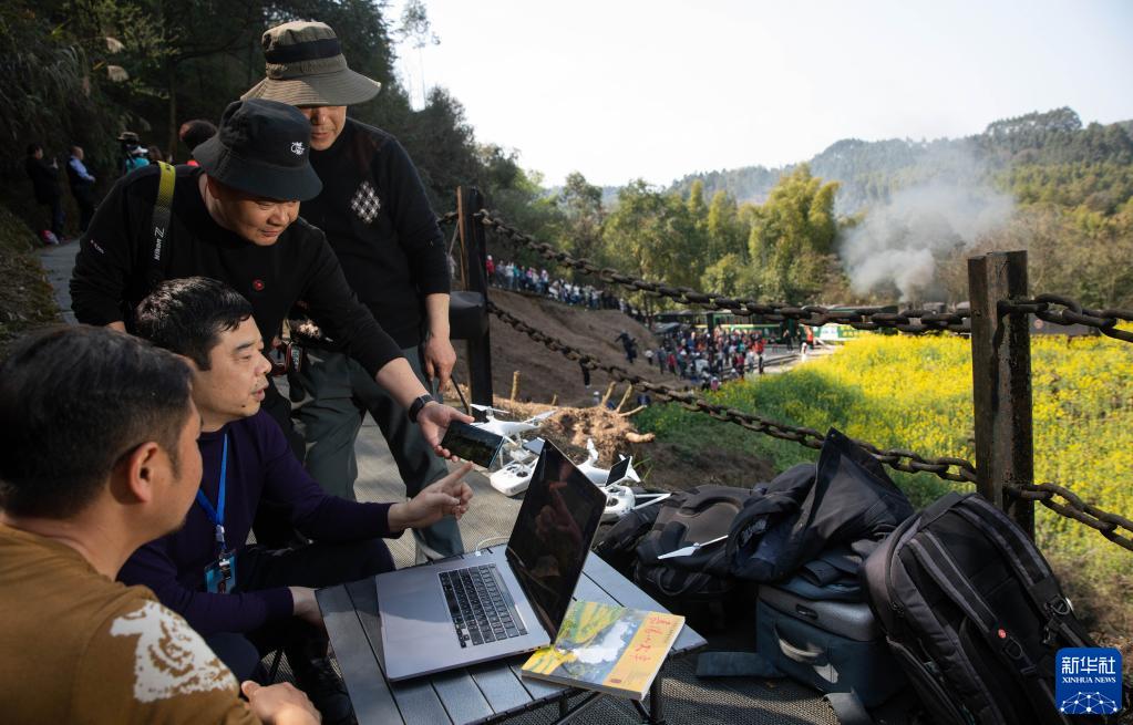 3月14日,在亮水沱站,“張火癡”(左二)和當地攝影師討論如何拍到蒸汽與彩虹的畫面。