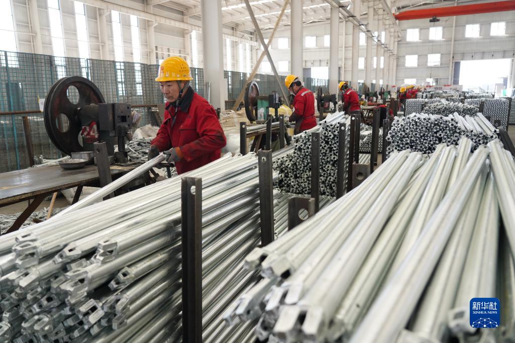 3月15日,在位于樂亭經濟開發區的華北易安德腳手架制造有限公司,工人在生產車間內工作。