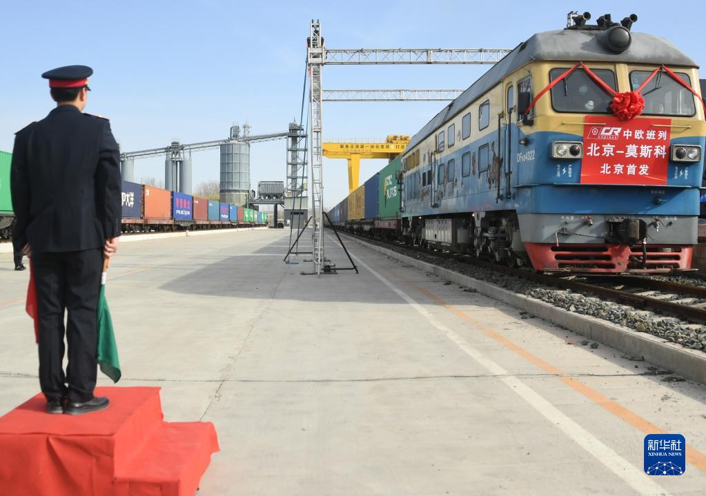 3月16日,在平谷地方鐵路馬坊站,京平綜合物流樞紐中歐班列(北京-莫斯科)發車。
