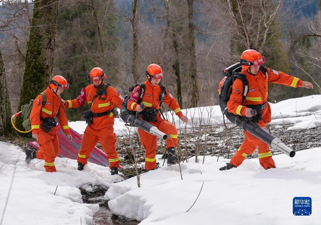 3月15日,鞏留縣森林消防大隊指戰員在庫爾德寧林區內行進。