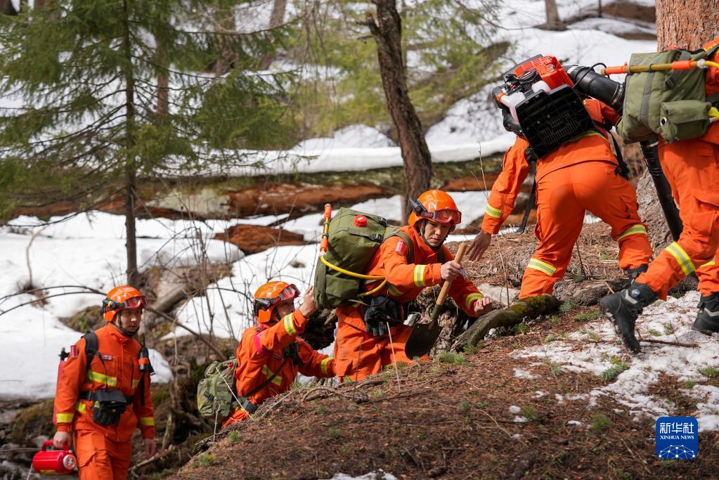 3月15日,鞏留縣森林消防大隊指戰員在庫爾德寧林區內行進。