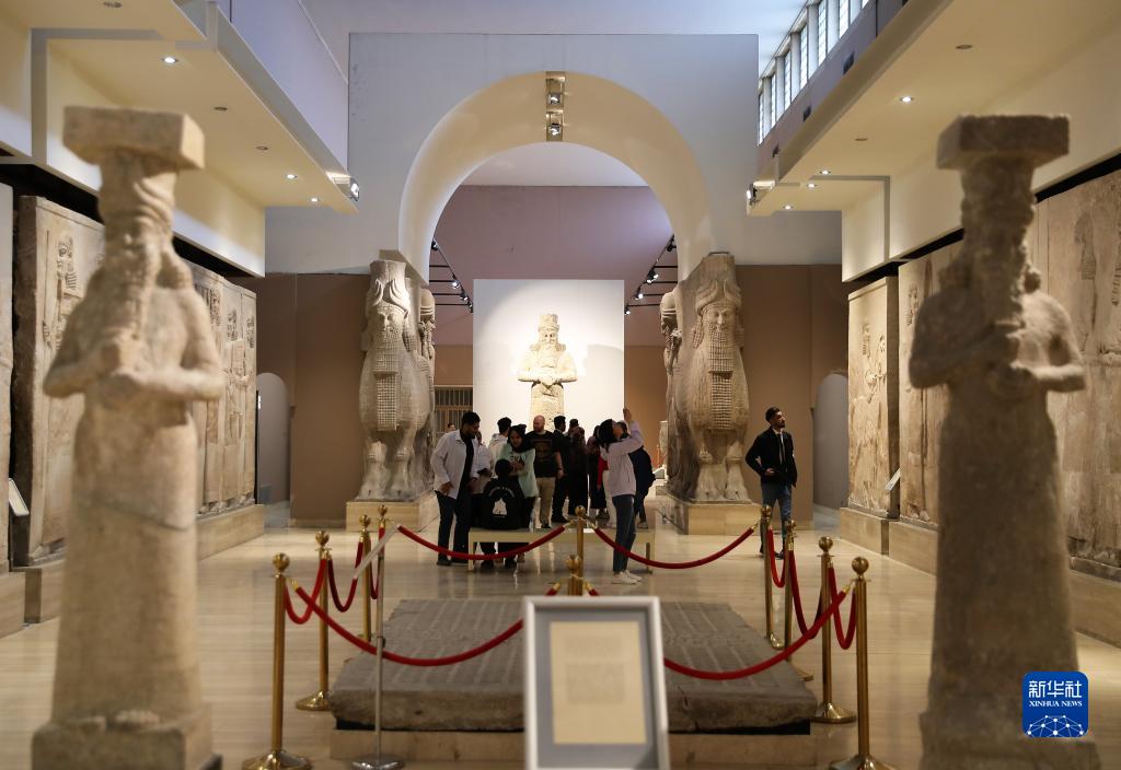 3月6日,游客在位于伊拉克首都巴格達的伊拉克博物館參觀。