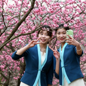 當日,第二十三屆中國·青島梅花節在山東省青島市開幕,漫山遍野的梅花競相綻放,吸引游人前來賞梅游園,享受美好春光。