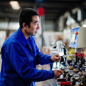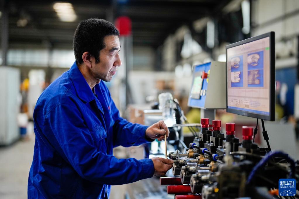 3月16日,玉田縣一家農用管材生產企業工人在滴灌設備生產線上工作。