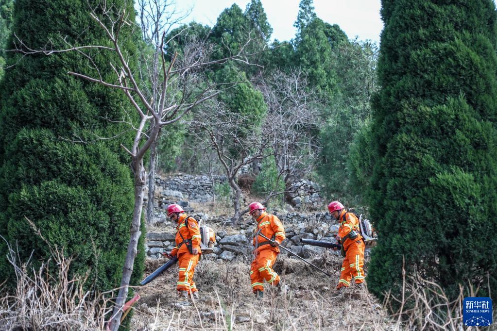 3月15日,長清區國有蓮臺山林場防火中隊隊員在林區巡護。