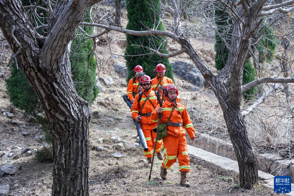 3月15日,長清區國有蓮臺山林場防火中隊隊員在林區巡護。