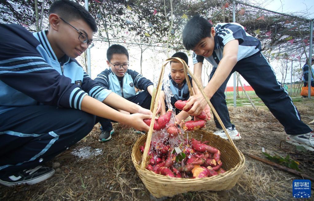 當日,廣西南寧市江南區沙井中學“田間課堂”開課。孩子們走進田間地頭,學習農事,體驗勞動帶來的快樂。