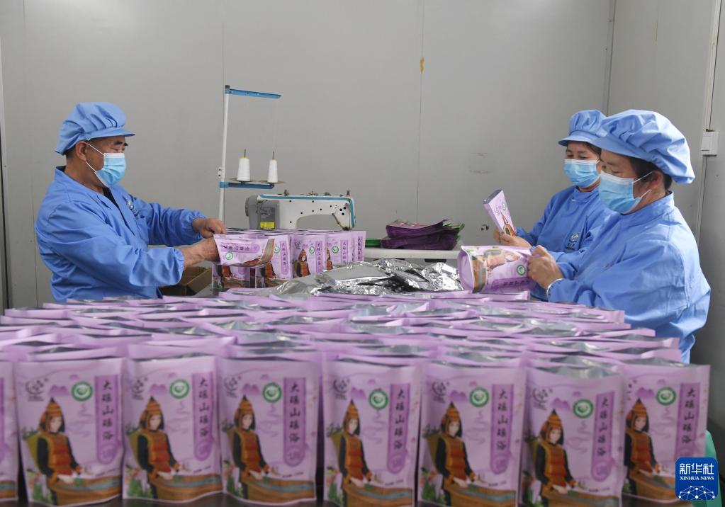 3月16日,在廣西金秀瑤族自治縣長垌鄉平道村一家瑤醫藥生產企業,員工在包裝產品。