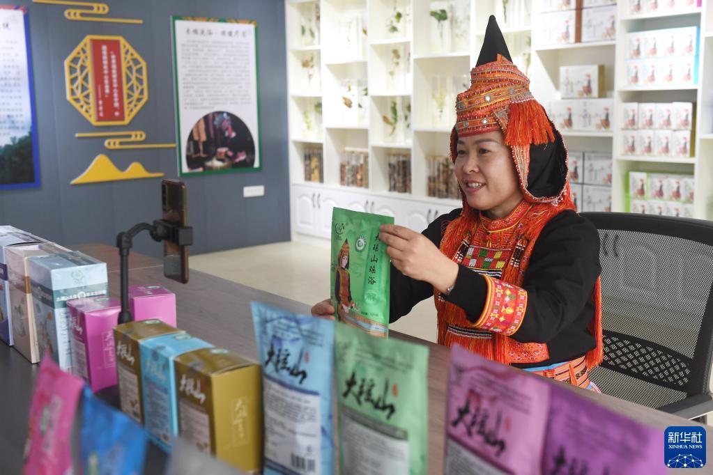 3月16日,在廣西金秀瑤族自治縣長垌鄉平道村一家瑤醫藥生產企業,一名員工通過網絡直播推介產品。