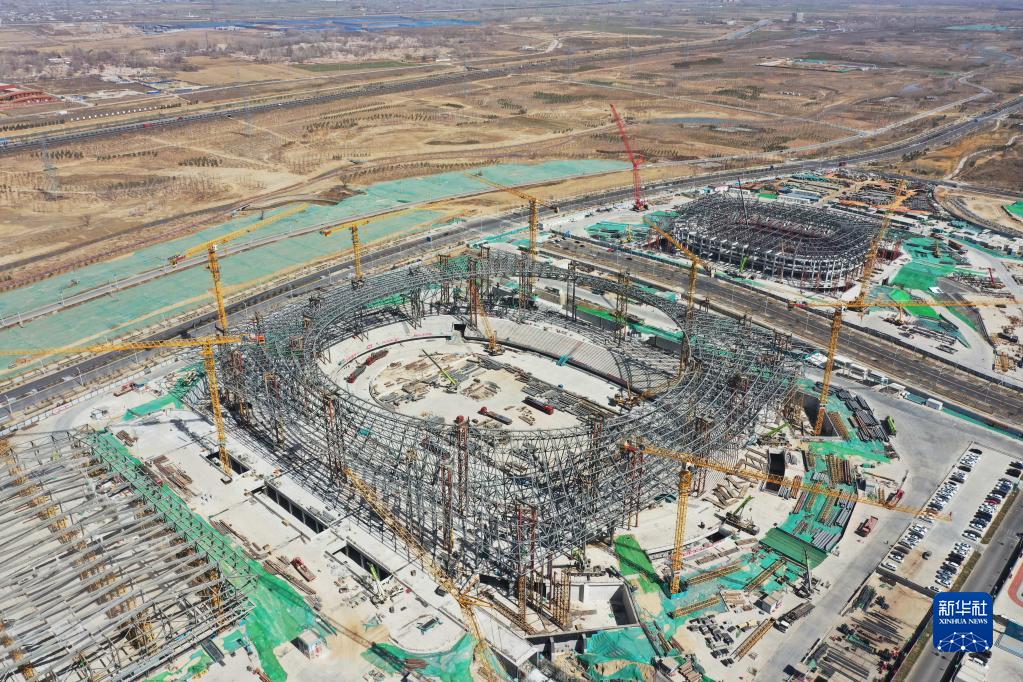 這是位于雄安新區啟動區的雄安體育中心項目現場(3月15日攝,無人機照片)。