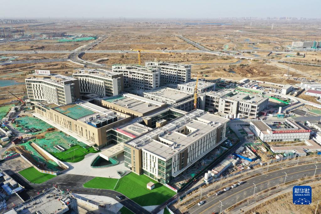 這是位于雄安新區啟動區的雄安宣武醫院項目現場(3月15日攝,無人機照片)。