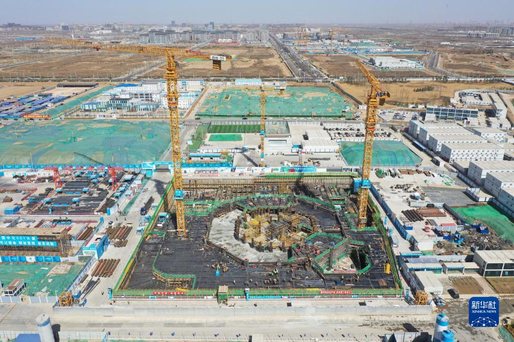 這是位于雄安新區啟動區的中國中化雄安總部001大廈項目現場(3月15日攝,無人機照片)。