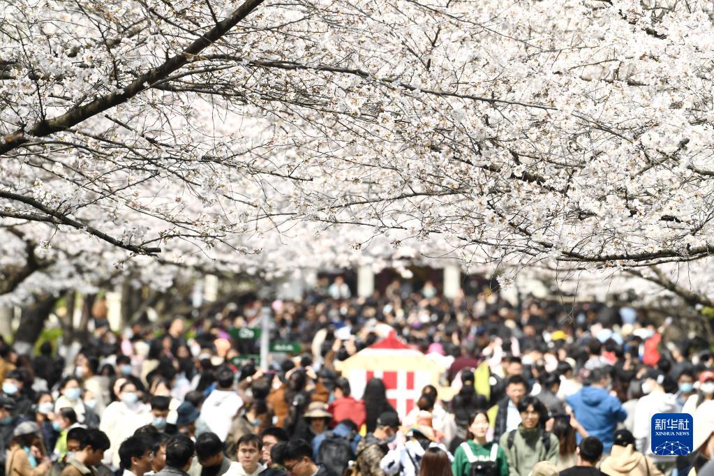 3月16日,人們在南京林業大學櫻花大道上賞花游玩。