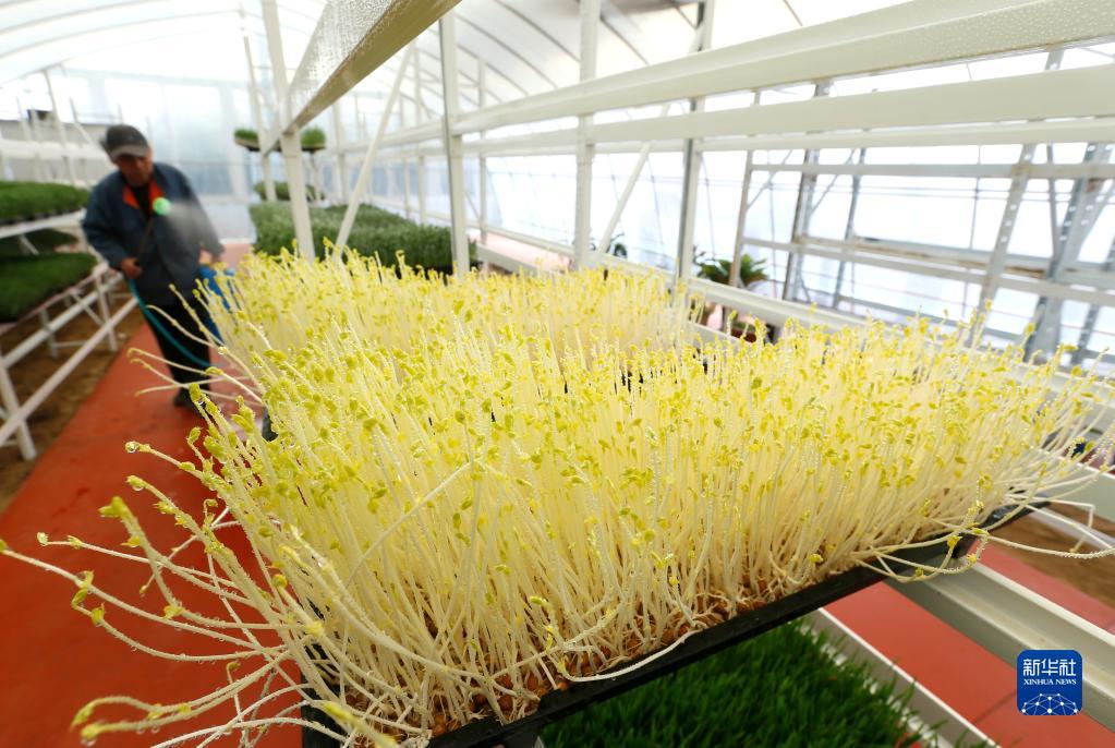 3月16日,在山東省青島市即墨區北安街道天郁芬芳農場,農民在管理芽苗菜。