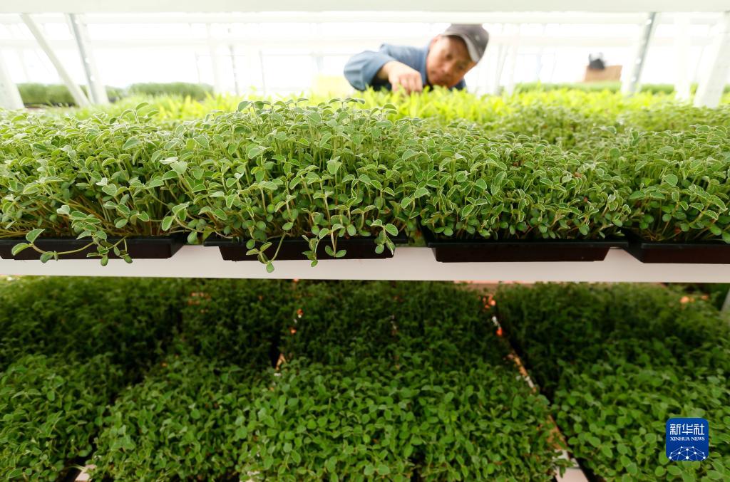 3月16日,在山東省青島市即墨區北安街道天郁芬芳農場,農民在管理芽苗菜。