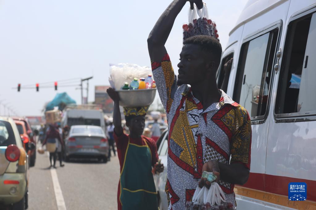 3月15日,商販在加納首都阿克拉一條街道上兜售商品。