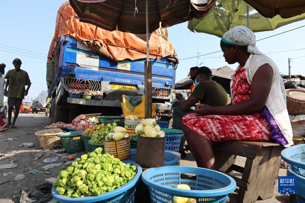 3月15日,商販在加納首都阿克拉一處市場兜售蔬菜。
