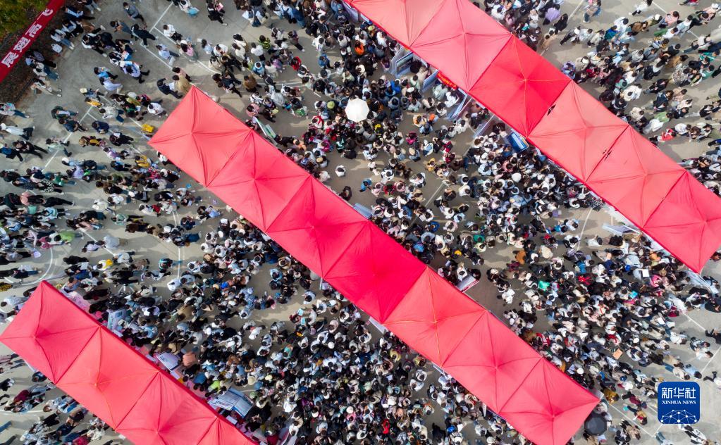這是3月16日拍攝的云南師范大學呈貢主校區校園招聘會現場(無人機照片)。