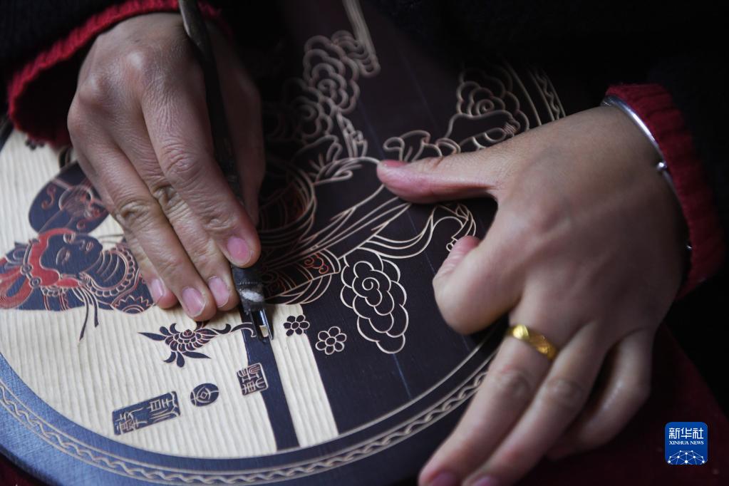 一名攤主在敦煌夜市制作手工藝品(3月16日攝)。