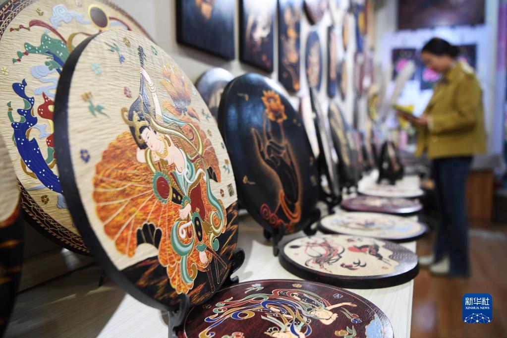一名游客在敦煌夜市選購特色文創產品(3月16日攝)。