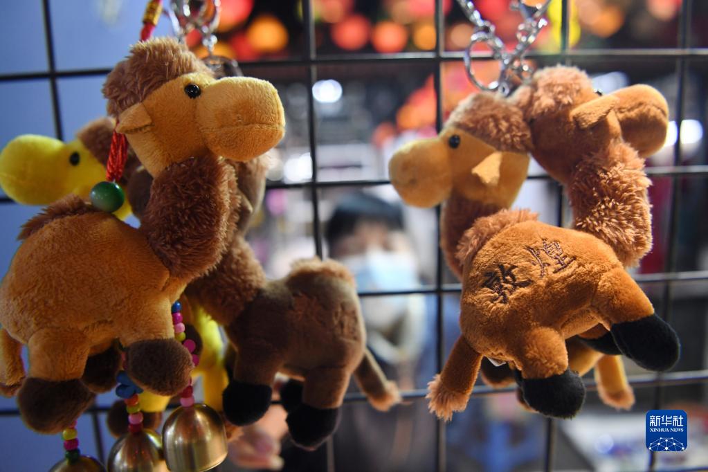 游客在敦煌夜市選購文創產品(3月16日攝)。