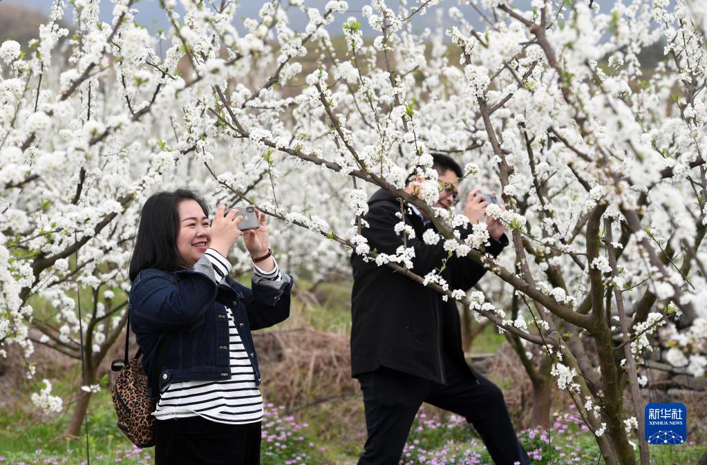 眼下,廣西金秀瑤族自治縣忠良鄉巴勒村李花綻放,吸引游客前來踏春賞花。