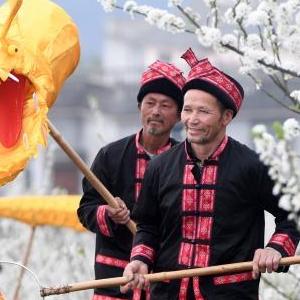 3月17日,在廣西金秀瑤族自治縣忠良鄉巴勒村,游客在賞花拍照。