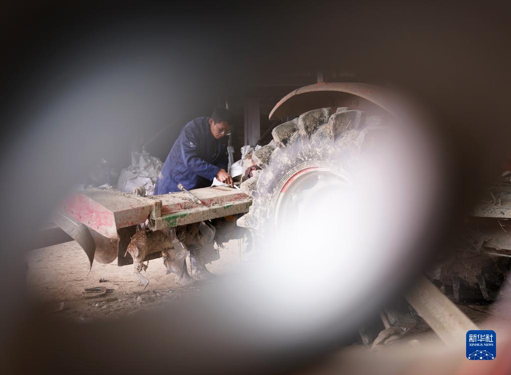 3月16日,張必超在諸暨市里聯農機專業合作社維修農機。