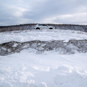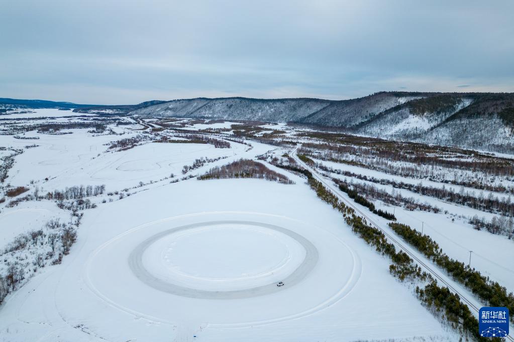 3月17日,在漠河紅河谷寒地試車基地,車輛在進行寒區試驗(無人機照片)。