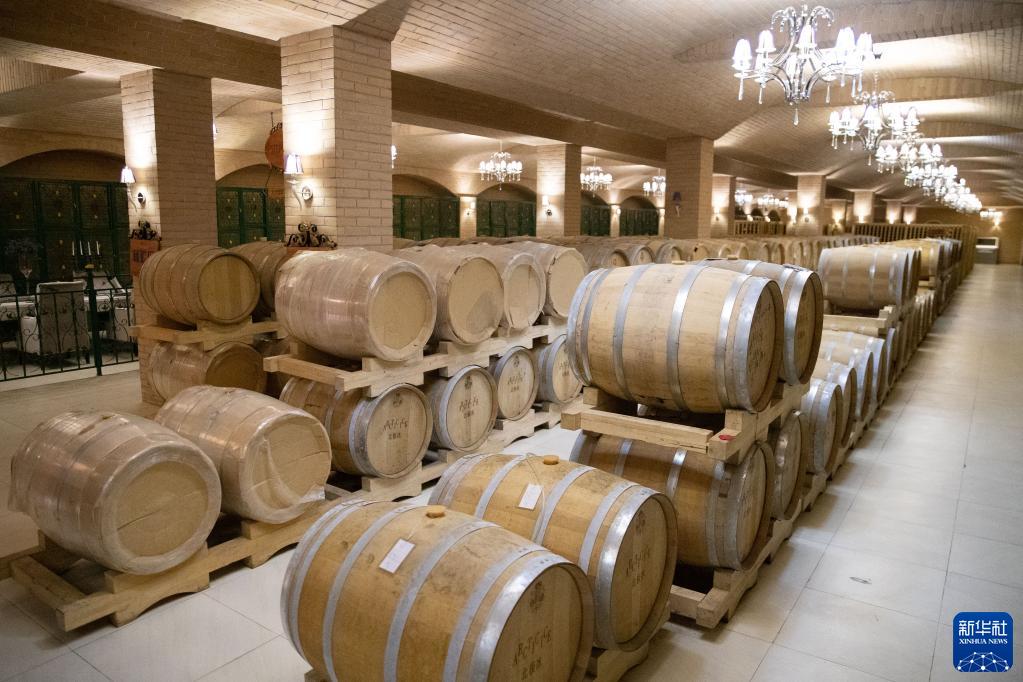 這是3月16日拍攝的大興安嶺北極冰藍莓酒莊有限公司酒窖內儲藏的由野生藍莓制作的藍莓酒。