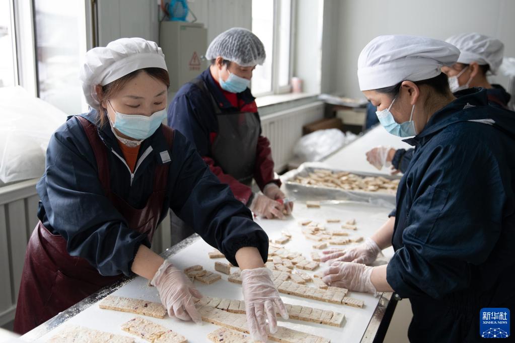 3月15日,在大興安嶺益康野生食品加工有限公司生產車間內,工人在加工野生堅果制品。