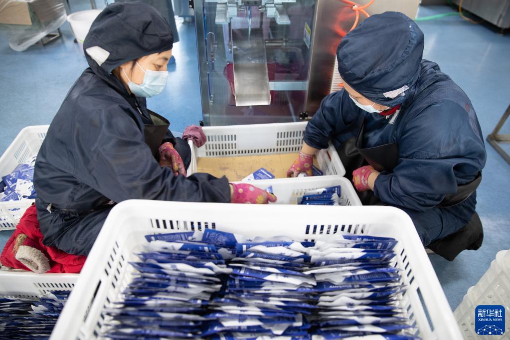 3月15日,在大興安嶺益康野生食品加工有限公司生產車間內,工人正在進行包裝作業。
