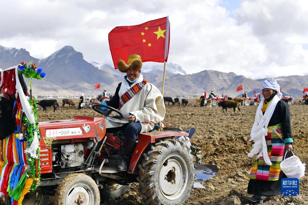 西藏拉薩市林周縣強嘎村的春耕儀式現場(3月16日攝)。